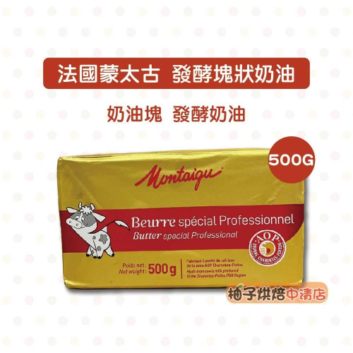 【柚子烘焙食品】法國 蒙太古 Montaigu 發酵塊狀奶油 500G(冷凍)發酵奶油 塊狀奶油 奶油塊 烹飪 法式料