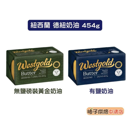 【柚子烘焙食品】紐西蘭 德紐westgold 磅裝黃金奶油 草飼奶油 454g 德紐 磅裝無鹽奶油 黃金奶油 有鹽奶油