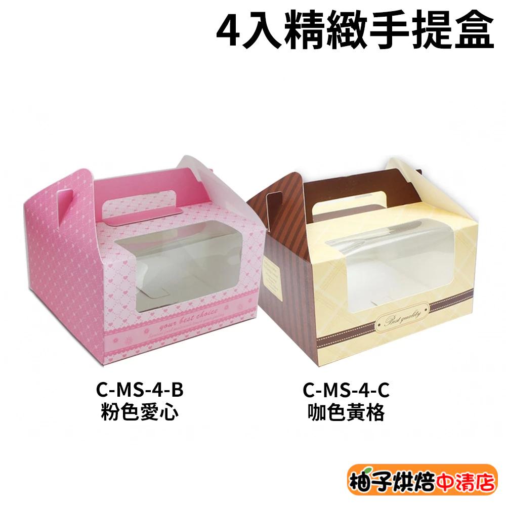 【柚子烘焙食品】4入手提開窗盒 精緻手提盒 包裝紙盒 外帶包裝盒 點心盒蛋糕盒 外送餐盒 甜點盒 蛋塔盒 月餅盒 瑪芬盒