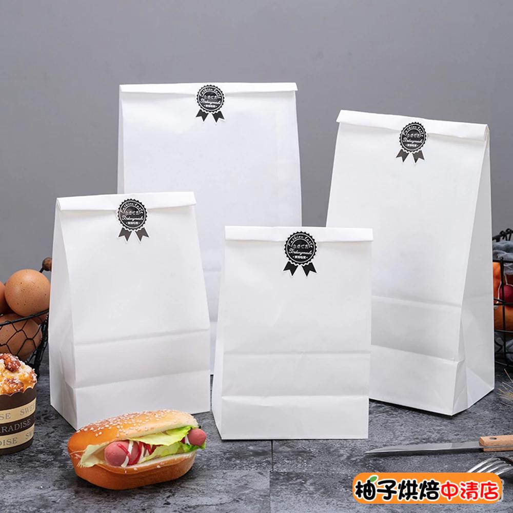 【柚子烘焙食品】白色牛皮紙防油紙袋(長30×寬15.5×側10cm) 25入 早餐外賣小吃打包袋 烘培麵包吐司袋