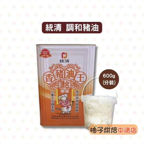 【柚子烘焙食品】統清調和豬油 600g 分裝 烘焙油脂 統一豬油 調和豬油 動物酥油 蛋黃酥 酥油 糕點 西點(冷藏)