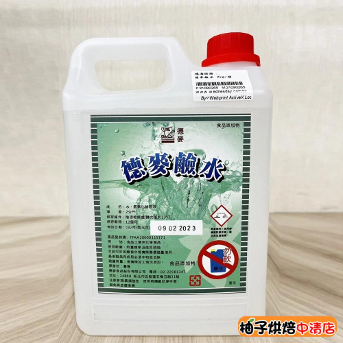 名稱:德麥鹼水 成份:水、氫氧化鈉溶液 淨重:2公斤 保存條件:陰涼乾燥處(請勿低於13°C), 保存期限:12個月 用途:食品工業用化學藥品 使用範圍、用量標準及使用限制: 本品可於各類食中視實際需要適量使用,最後製品完成前必須中和或去除 原產地:台灣 注意事項:具腐蝕性,使用時請戴防滲手套,避免與皮膚接觸 ※非鹼粽用,適用麵包、德國結、燙貝果 *****下單請注意***** 📦 包裹規格限制: ◆超商取貨及蝦皮店到店限重五公斤以內(含包材)。 提醒您若購買1公斤的商品,超取蝦取最多只能購買四包喔! ◆下單後若商品無缺貨1~3天內會出貨。(特殊情況除外) ◆賣家宅配常溫_重量限制25公斤內,冷藏宅配,冷凍宅配_重量限制20公斤以內(含包材)~ ◆花東,外島及偏遠地區 運費另計, 下單需另外下標「運費補差額」 ◆開箱貨品時請錄影,有任何問題可以確保雙方權益!!!! ◆低溫商品、易於腐敗、保存期限較短之商品,不適用《消費者保護法》第19條的七天鑑賞期。出貨後將不受理退換貨。 🔔 任何問題歡迎 "聊聊" ◆實體店面:柚子烘焙食品 ◆營業時間:10:00~21:00 ◆周一至周日皆有營業唷~ ◆中清店 地址:台中市北區中清路一段292號 電話:04-22061810 ◆永春店 地址:台中市南屯區永春東路800號 電話:04-23825489 ◆中壢店 地址:桃園市中壢區延平路448號1樓 電話:03-42550300