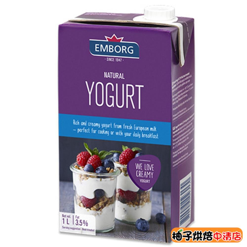 【柚子烘焙食品】德國 Emborg 安博格原味優格 1L 安博格 原味優格 歐式優格 飲品 飲料 燕麥 水果 蛋糕 醃料