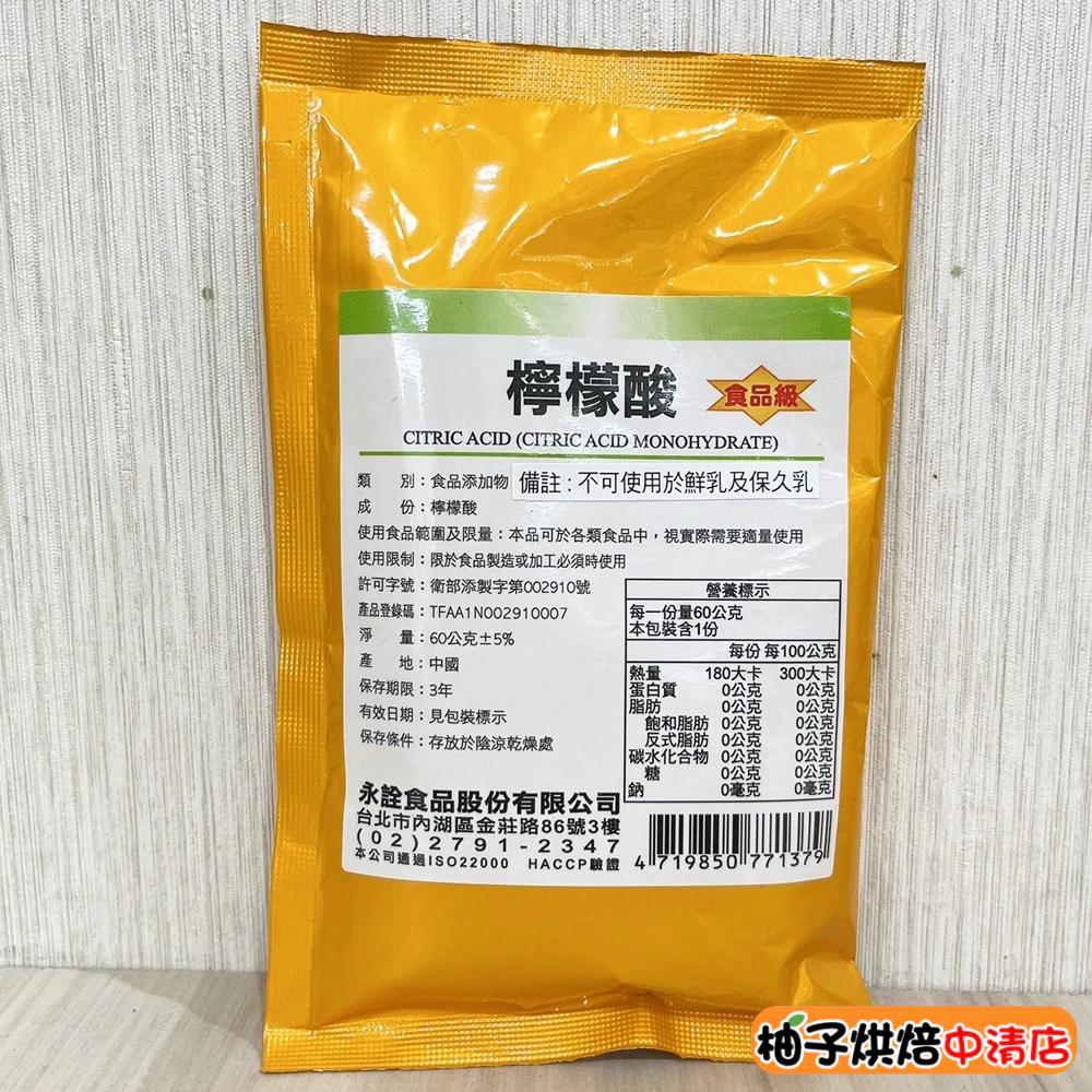 【柚子烘焙食品】永詮食品 食品級 檸檬酸 60g 永詮檸檬酸 永詮 檸檬酸 60公克 檸檬 調味劑 食品添加物 食品用