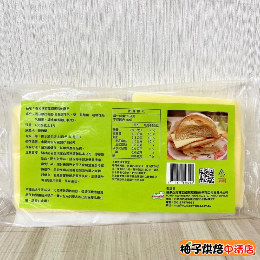 【柚子烘焙食品】奇司博特厚切乾酪片 400g(16片) (冷藏) 天然起司片 馬茲瑞拉 奇司博特乾酪片 紐西蘭 乾酪
