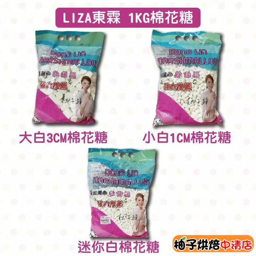 【柚子烘焙食品】東霖LIZA 棉花糖 迷你白棉花糖 大白棉花糖 小白棉花糖 1kg 牛軋糖 牛軋餅 雪Q餅 易容解 烘焙