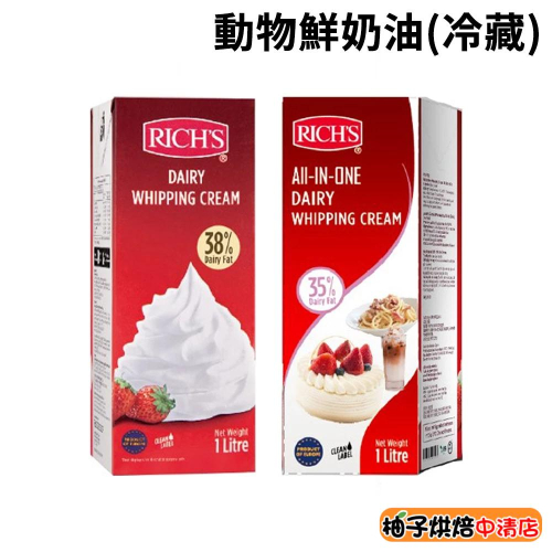 【柚子烘焙食品】Rich's 理奇多功能動物鮮奶油 理奇動物鮮奶油 多功能動物性鮮奶油 35% 38% 1L (冷藏)