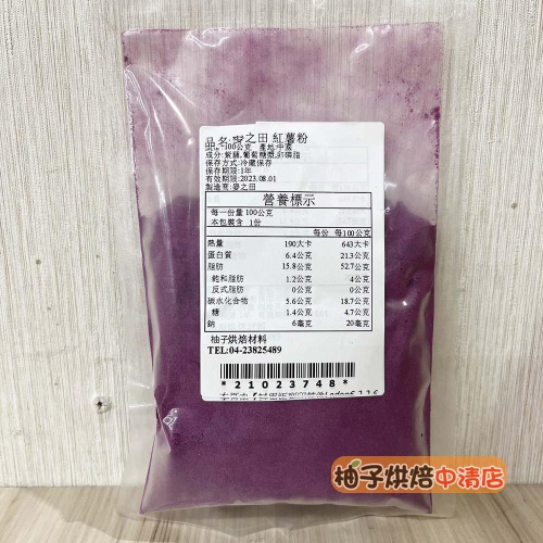 【柚子烘焙食品】天然蔬果粉 紅薯粉 紫薯粉 100g(冷藏)麥之田 紫地瓜粉 天然蔬菜粉 天然色粉 100%蔬果粉 調色