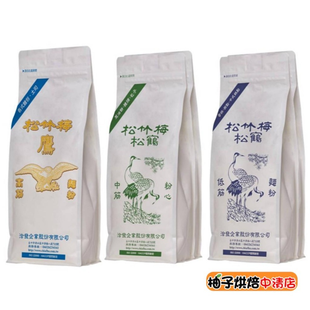 https://s-cf-tw.shopeesz.com/file/sg-11134202-8225w-mhvji7qk2kg422 洽發牌 松竹梅系列麵粉 松鶴低筋麵粉 1kg原裝 松鶴中筋粉心 1kg原裝 松鶴鷹高筋麵粉 1kg原裝 彩虹日規強力粉 1kg原裝 麵包機專用麵粉 1kg原裝 三代全麥麵粉 1kg原裝 彩虹強力粉g(高筋麵粉) 1kg (分裝) 📌高筋麵粉 蛋白質13.8 灰份0.52 用途:吐司麵包、各式甜麵包 📌中筋麵粉 蛋白質11.8 灰份 0.37 用途:包子、饅頭、麵條 📌低筋麵粉 蛋白質 8.0 灰份 0.42 用途:蛋糕、西點、餅乾 📌彩虹高筋麵粉(無添加) 強力粉 ✔️二次研磨, 粉質比較細,吸水性更好 筋度:高筋麵粉 用途:高級吐司、甜麵包、歐式麵包 蛋白質13.0 灰份0.45 📌麵包機專用麵粉 筋度:高筋麵粉 蛋白質 13.0 灰份 0.45 用途:吐司麵包、各式甜麵包 📌三代全麥粉 筋度:全麥麵粉 用途:全麥麵包、全麥饅頭、全麥麵條及其他全麥食品 蛋白質:14.5 灰份:1.5 *****下單請注意***** 📦 包裹規格限制: ◆超商取貨及蝦皮店到店限重五公斤以內(含包材)。 提醒您若購買1公斤的商品,超取蝦取最多只能購買四包喔! ◆7-11便利店,全家冷凍,蝦皮店到家宅配_重量限制8公斤以內 ◆蝦皮黑貓,蝦皮宅配通_重量限制18公斤以內 ◆賣家宅配常溫_重量限制25公斤內,冷藏宅配,冷凍宅配_重量限制20公斤以內(含包材) ◆花東,外島及偏遠地區 運費另計, 下單需另外下標「運費補差額」 ◆下單後若商品無缺貨1~3天內會出貨。(特殊情況除外) ◆開箱貨品時請錄影,有任何問題可以確保雙方權益!!!! ◆低溫商品、易於腐敗、保存期限較短之商品,不適用《消費者保護法》第19條的七天鑑賞期。出貨後將不受理退換貨。 🔔 任何問題歡迎 "聊聊" ◆實體店面:柚子烘焙食品 ◆營業時間:10:00~21:00 ◆周一至周日皆有營業唷~ ◆中壢店 地址:桃園市中壢區延平路448號1樓 電話:03-42550300 ◆春日店 地址:桃園市桃園區春日路1156號 電話:03-3261910 ◆中清店 地址:台中市北區中清路一段292號 電話:04-22061810 ◆永春店 地址:台中市南屯區永春東路800號 電話:04-23825489 ◆逢甲店 地址:台中市西屯區逢甲路138號 電話:04-24520684