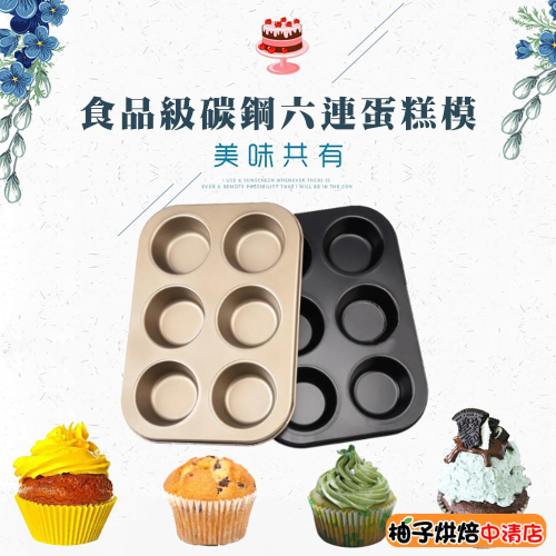 【柚子烘焙食品】六連碳鋼圓形蛋糕模 不沾烤盤 蛋糕模 蛋糕烤盤 杯子蛋糕 戚風蛋糕 蛋糕模具 不沾塗層 DIY烘焙工具