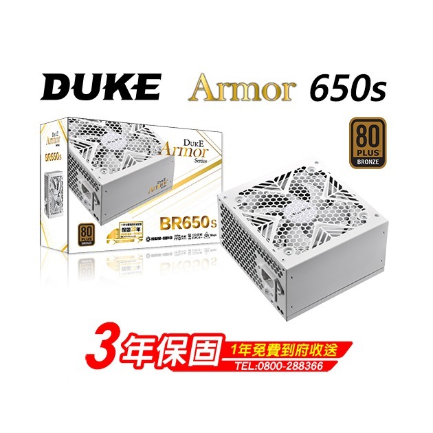 [含稅開發票] 全白色電源 DUKE ARMOR BR650S (80Plus銅牌)接頭 線都白的/電源供應器/白色
