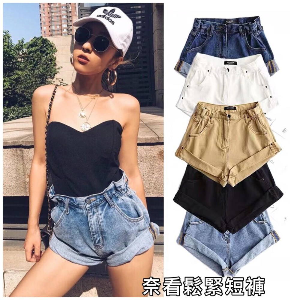 🥇不退燒單品 黑標 超紅鬆緊腰時髦三色短褲 微線笑收腰提腿牛仔短褲 熱褲