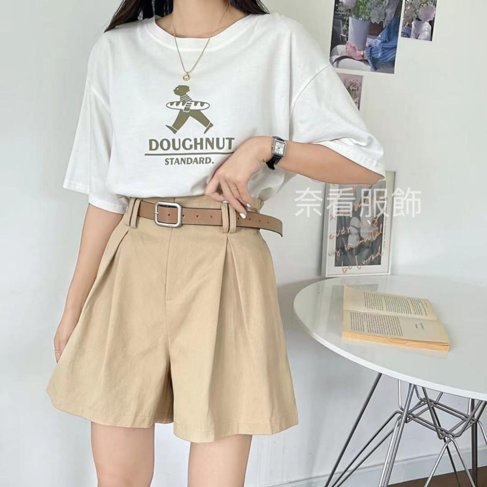 奈看服飾/有附皮帶/完全遮胯小鳥腿設計內折線顯瘦短褲 好穿親膚棉質