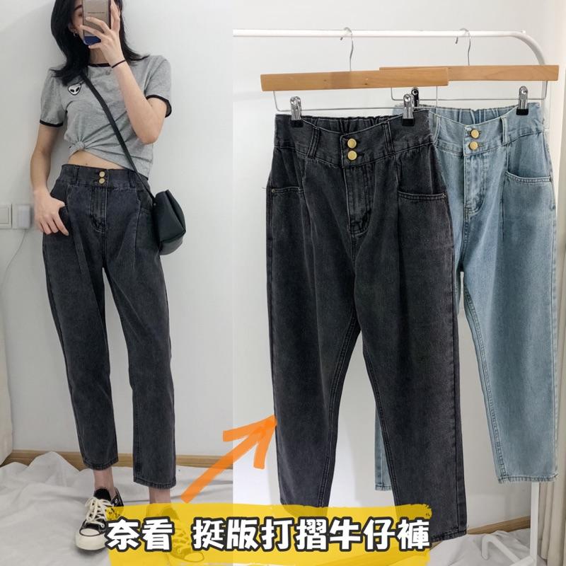 奈看實拍/ 獨家定制/ 含棉98%打摺挺版二粒扣單寧牛仔褲 9分 二色
