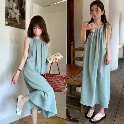 奈看服飾/唯美氣質必買款 美翻baby藍掛脖洋裝裙 度假休閒裙