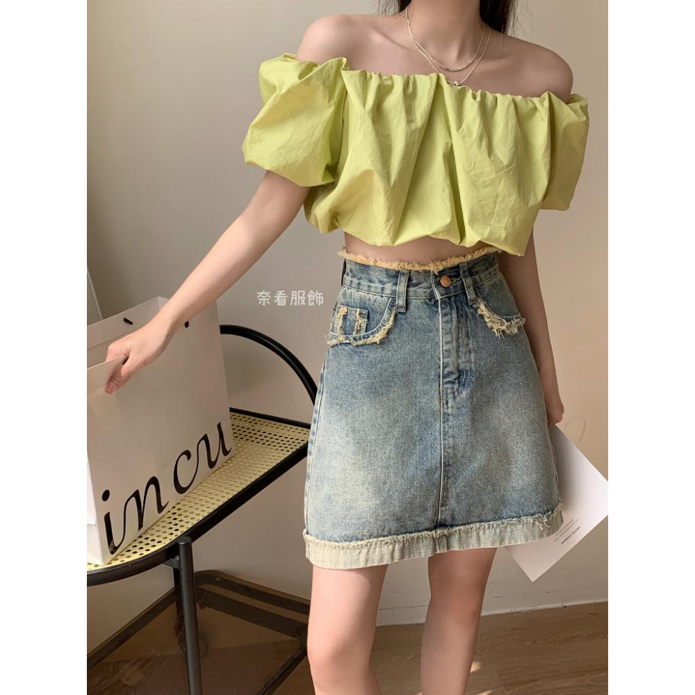 奈看服飾/百變微甜女孩 防走光抽須隨性單寧牛仔短裙 牛仔裙