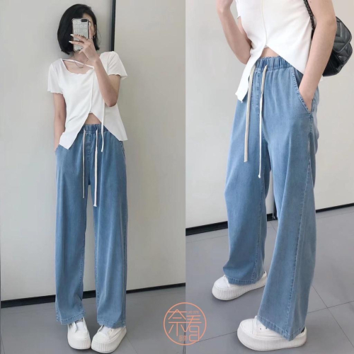奈看服飾/新增深色~自定極薄65%天絲零感天絲牛仔褲 寬鬆鬆緊腰吃肉肉垂墜面料