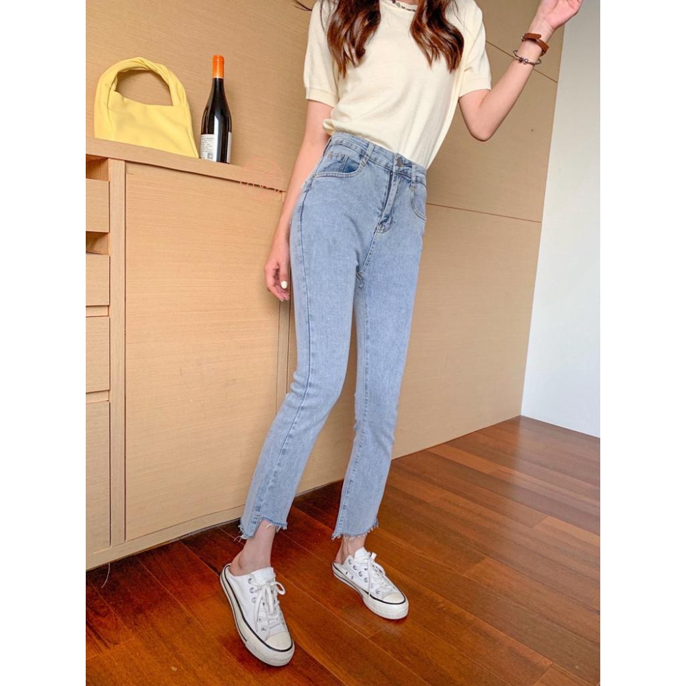 奈看服飾/快速出~灰藍調適合夏天薄款牛仔布微剪褲腳牛仔褲 9分款