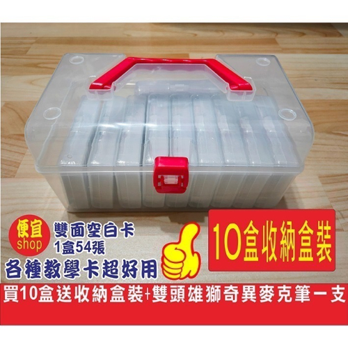 1.5.8*8.8公分雙面空白卡紙白板卡-1盒54張盒裝,字卡收納盒裝10盒(有送一支奇異筆)
