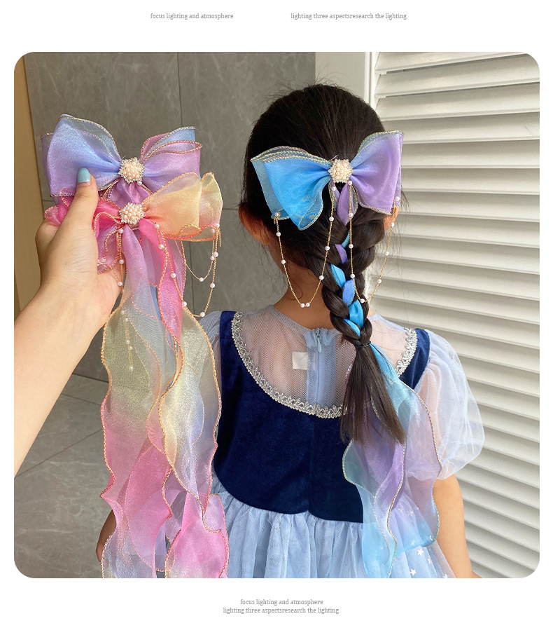 這款女童髮帶特別引人注目的是其漸變七彩的長髮帶設計。色彩豐富,能夠在任何光線下都展現出獨特的閃耀效果,讓你的小公主無論在哪裡都能成為焦點。