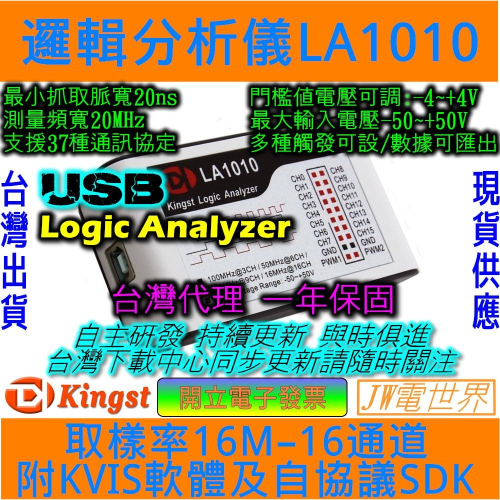⚡電世界⚡ Kingst LA1010 USB 邏輯分析儀 16通道 100M取樣率可調閾值 [930-1]