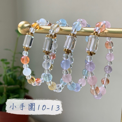 薄荷糖)白水晶、藍月光石、海藍寶、黃髮晶