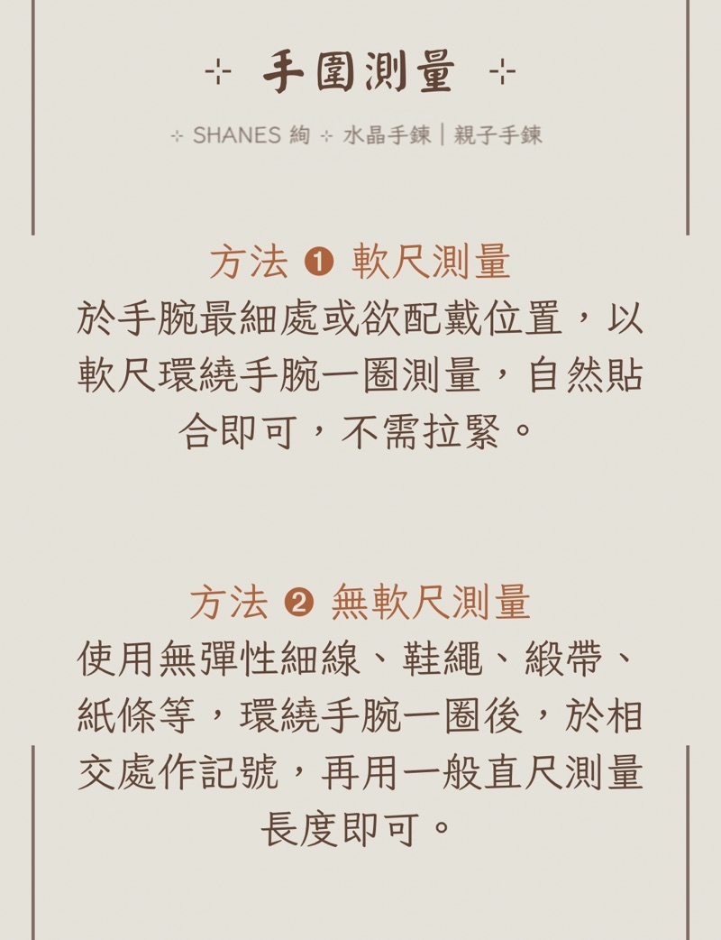 ✔️ 手圍不做預鬆,請直接下單習慣配戴的手圍大小即可。