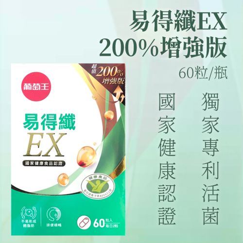 品名: 葡萄王 健字號 EX易得纖益生菌膠囊