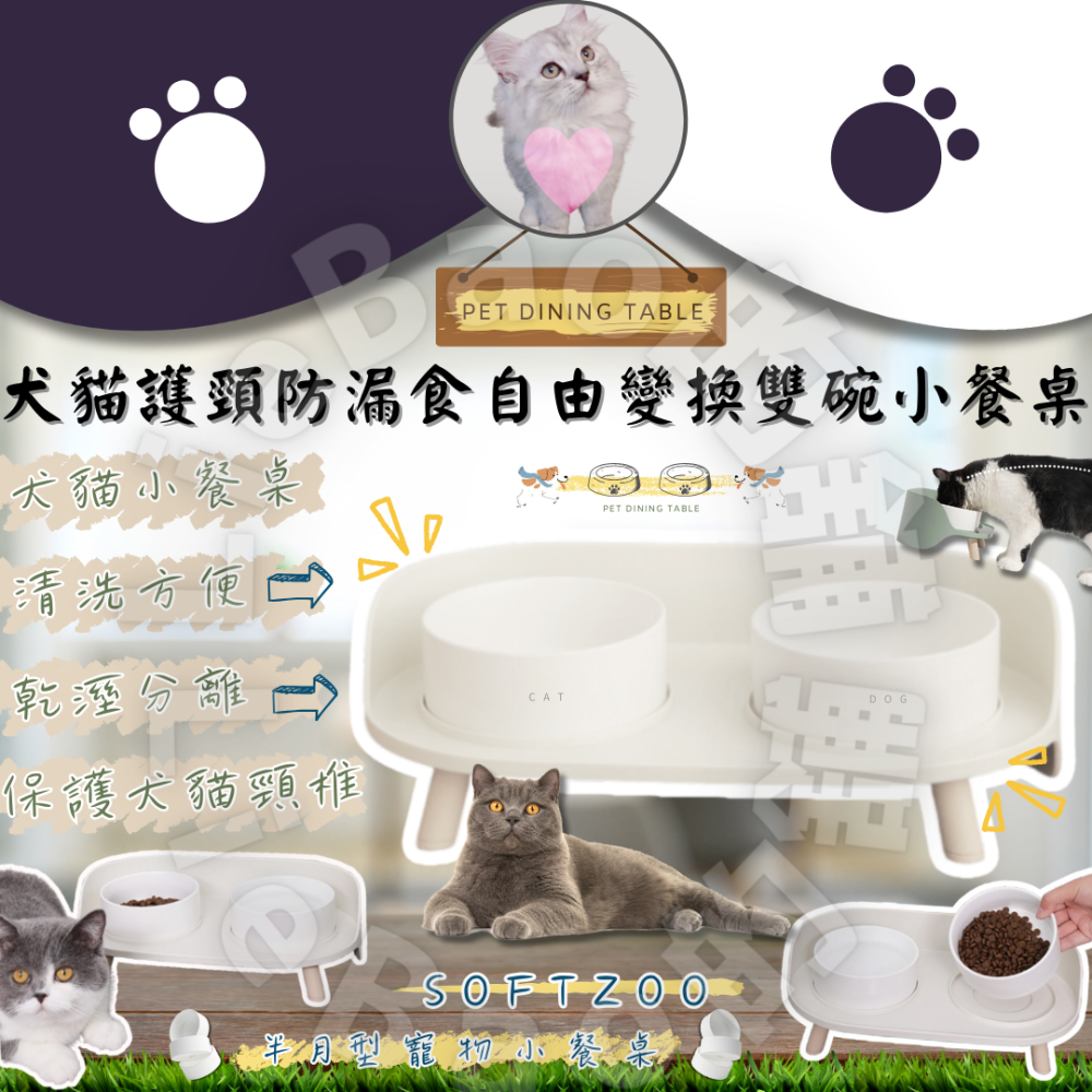🎉犬貓護頸防漏食自由變換月半型雙碗小餐桌🎉