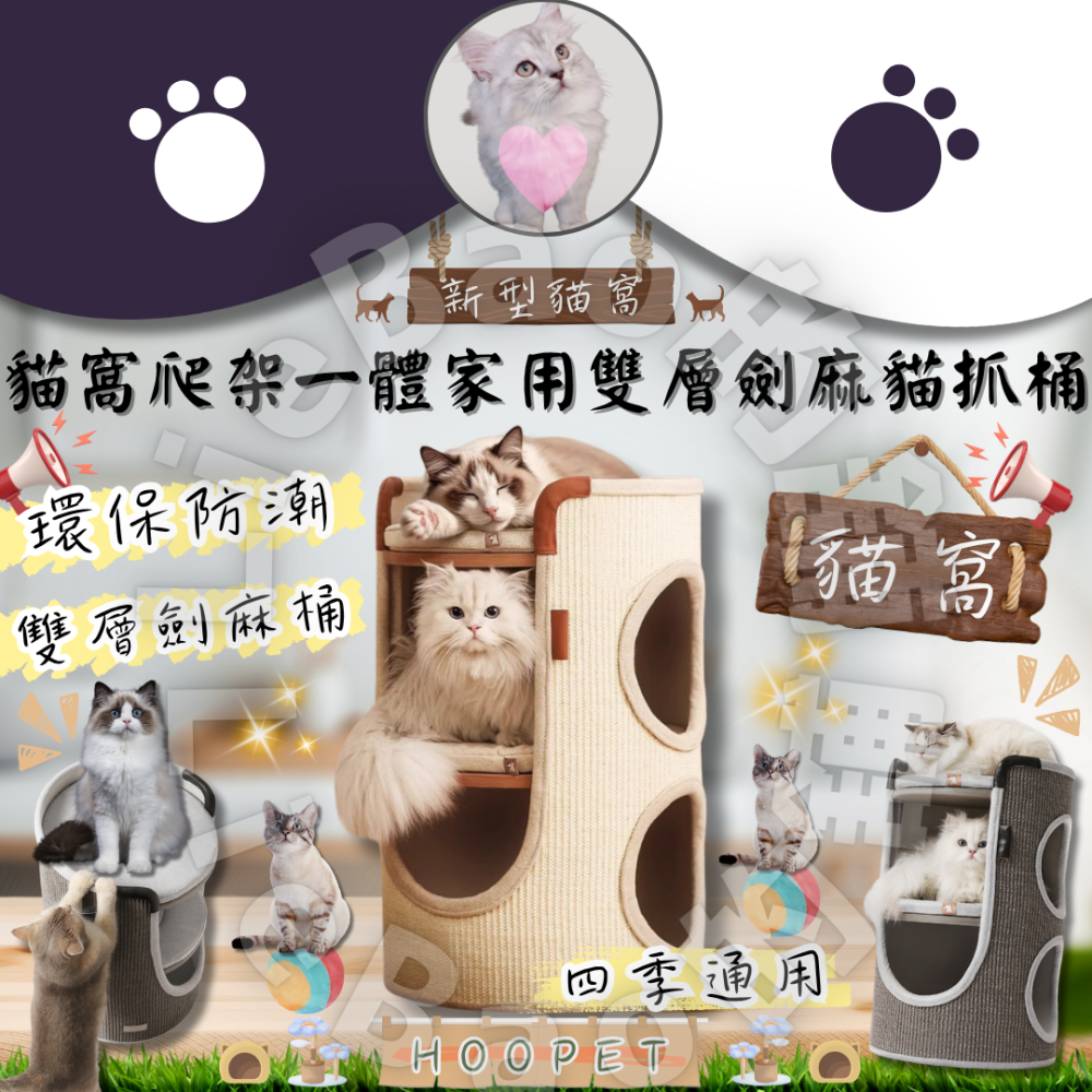 🎉新型新式貓窩爬架一體家用雙層劍麻貓抓桶🎉