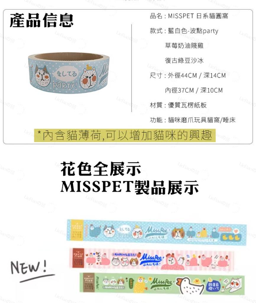 🌱品 名 : MISSPET 貓抓圓窩🌱