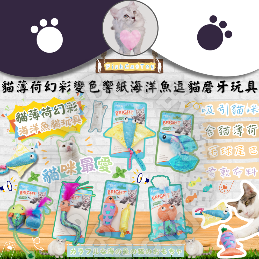 🐱貓薄荷幻彩變色響紙海洋魚逗貓磨牙玩具🐱