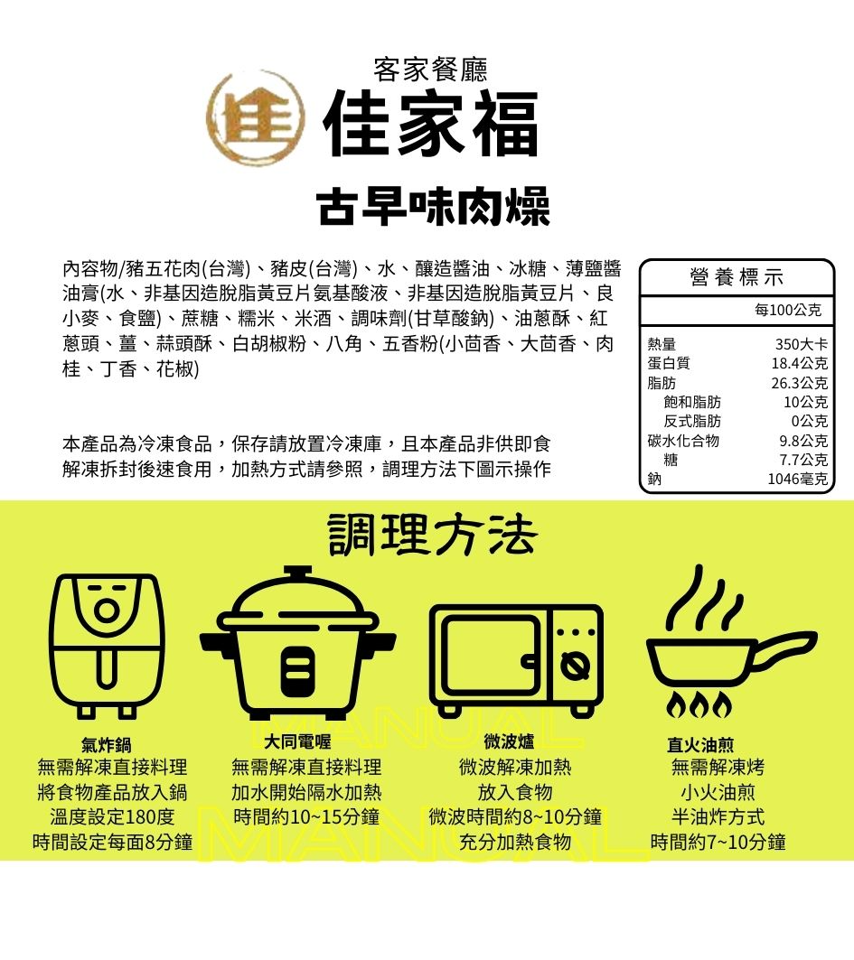 本產品為冷凍食品,保存請放置冷凍庫,且本產品非供即食,解凍拆封後速食用,加熱方式請參照,調理方法下圖示操作