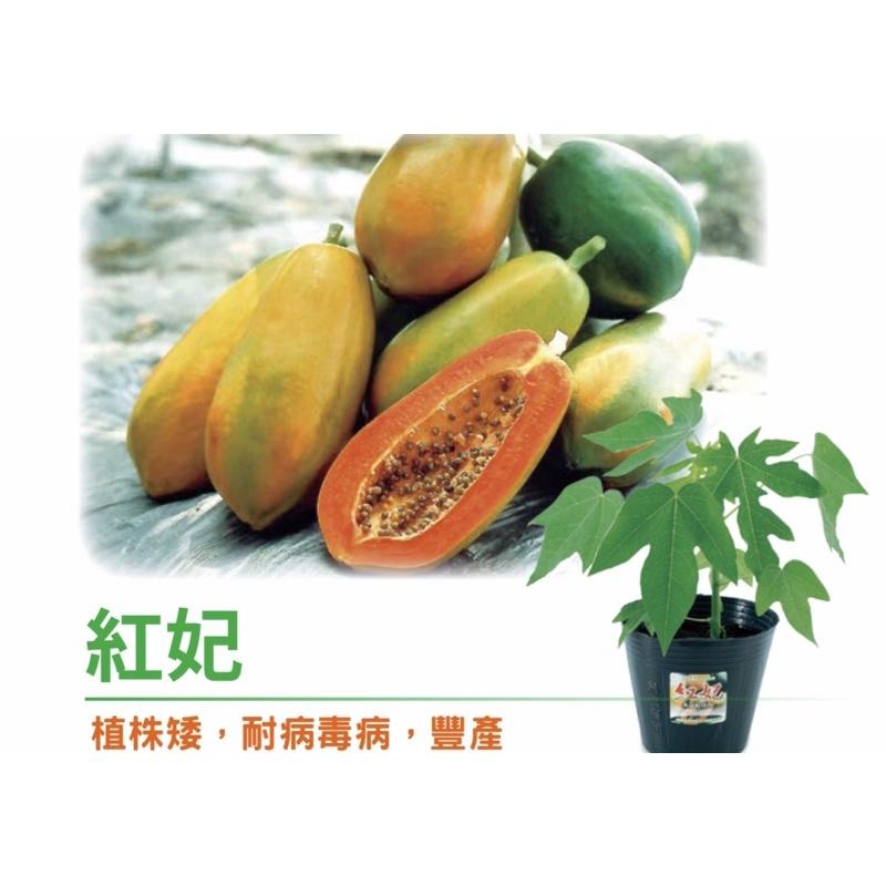 矮種紅妃木瓜苗 生育強健,早生,結果力強。 兩性株果實長橢圓型。 果肉厚,肉質細緻,肉色紅美(低溫期較淡紅)。 汁水豐多,,耐貯運。 兩性果重2~2.5公斤。 需要移植,80 ~ 90公分,開始結果,移植後約 7、8個月可以採收。 果重 1.3 ~ 1.6 公斤,結果形狀:長橢圓型