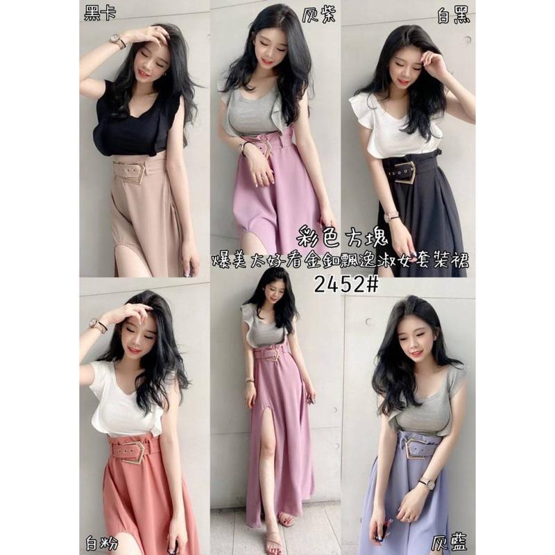 YAN女裝現貨 仙女網美必備長裙套裝 飄逸 長裙 顯瘦 長洋 百搭 素面 海邊 出國 出遊 渡假 彩色方塊 ootd