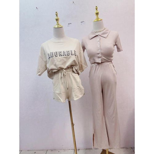 YAN女裝現貨實拍!自訂款套裝 英字短褲休閒套裝 翻領長褲套裝 休閒 百搭 可愛 俏皮 寬褲套裝 彩色方塊 ootd