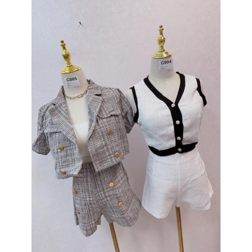 • 左邊短袖小香風套裝褲鬆緊S-小L皆可