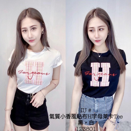 【台灣現貨】24H出貨☝舒適好穿H上衣 休閒棉t 萊卡 素面 上衣 百搭 刺繡上衣 tee 彩色方塊 ootd