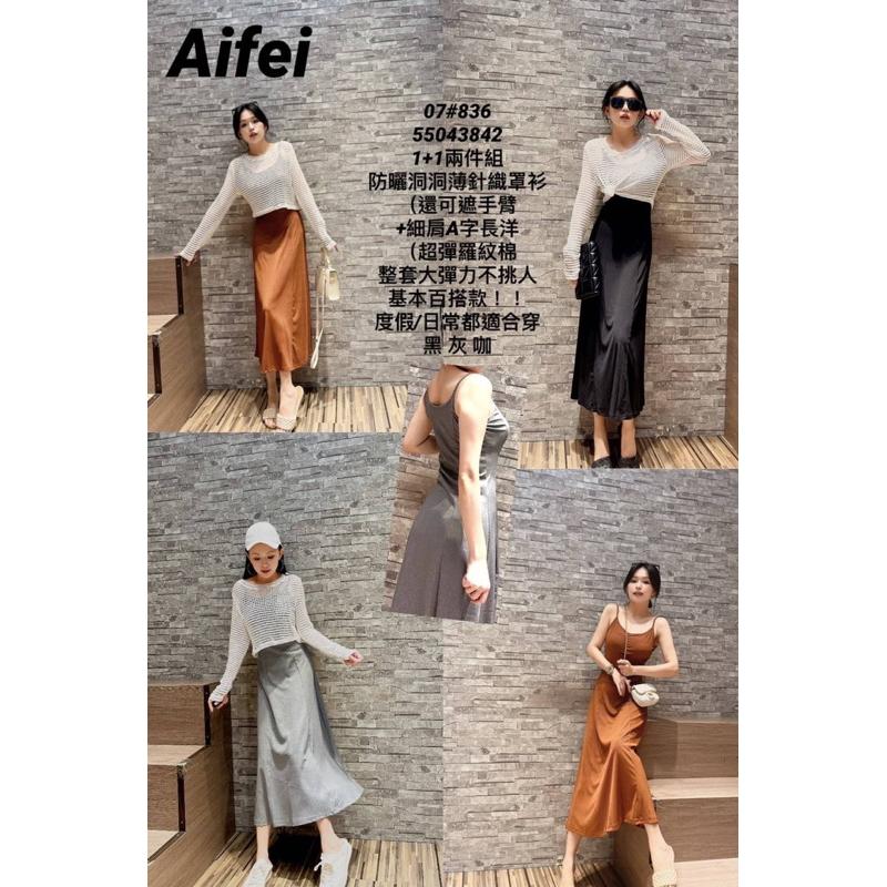 🆈🅰🅽現貨秒出 防曬洞洞薄針織罩衫+細肩A字長洋 孕婦 顯瘦 大尺碼 長裙 長洋 套裝