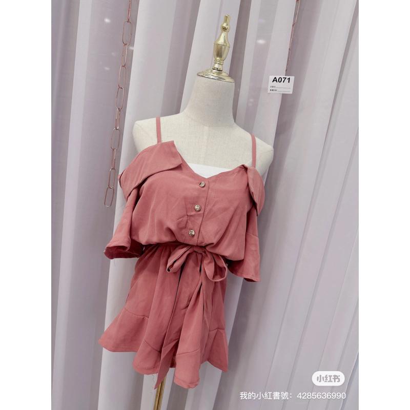 🆈🅰🅽現貨實拍 挖件綁帶荷葉連身短褲 連身褲
