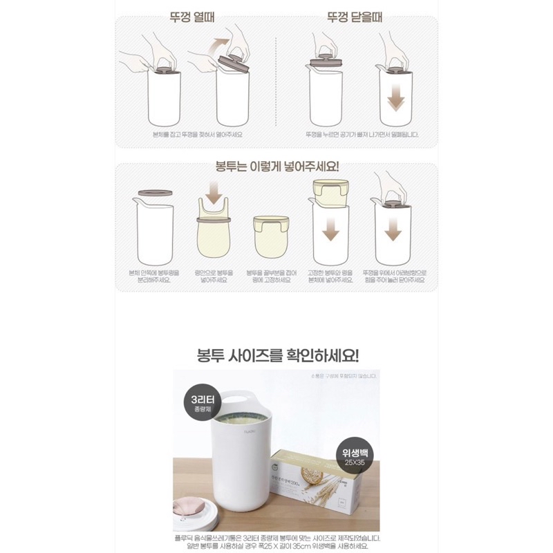 韓國代購🇰🇷絕美精品廚具 fluidic 二代奶油米白色 真空廚餘桶3L/一代廚餘桶+垃圾袋30p 套裝