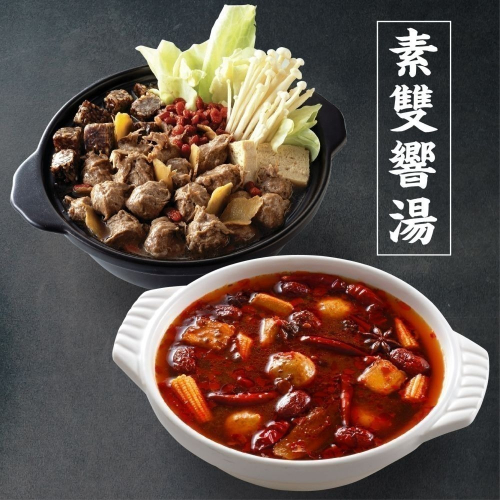 烹飪方式:請將雙響湯品拆開外袋後,將素薑母鴨湯底以溫水充分解凍後,剪開包裝口倒入鍋中,依個人喜好酌量加入各式火鍋料食材及青菜,以小火加熱煮沸至食材熟透即可食用。