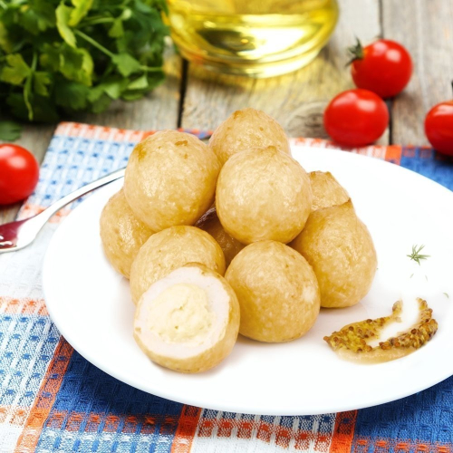 素丸子,以「蒟蒻」製成,創造Q脆口感,搭配香濃乳酪,是老人小孩皆喜愛的口味。