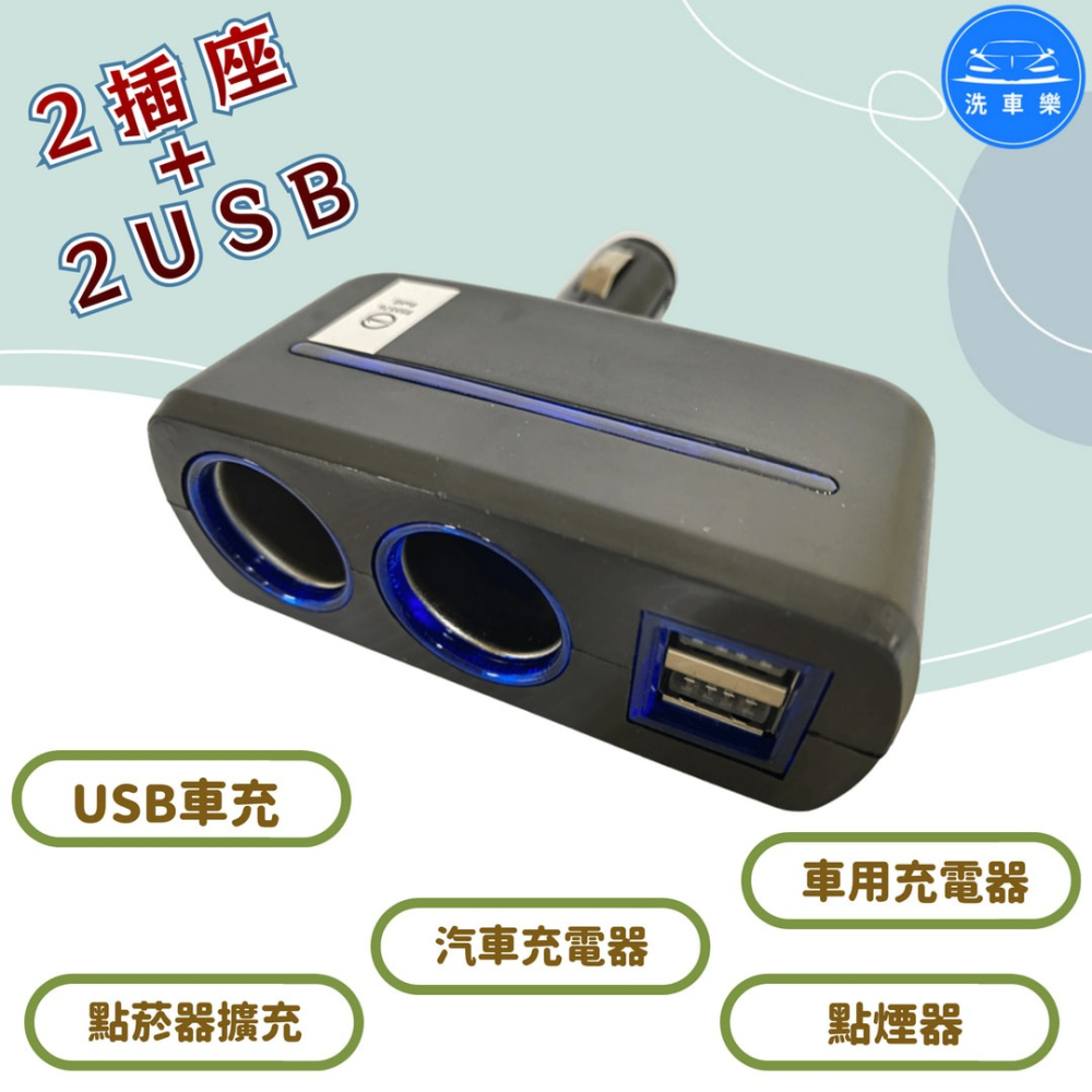 洗車樂 ◤附發票◢*2插座+2USB USB車充 汽車充電器 點菸器擴充 車用充電器 點煙器 通過BSMI商檢局認證 字號R55576