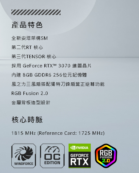 GeForce RTX™ 3070 VISION OC 8G 白卡 手機平板筆電舊機零件折抵貼換