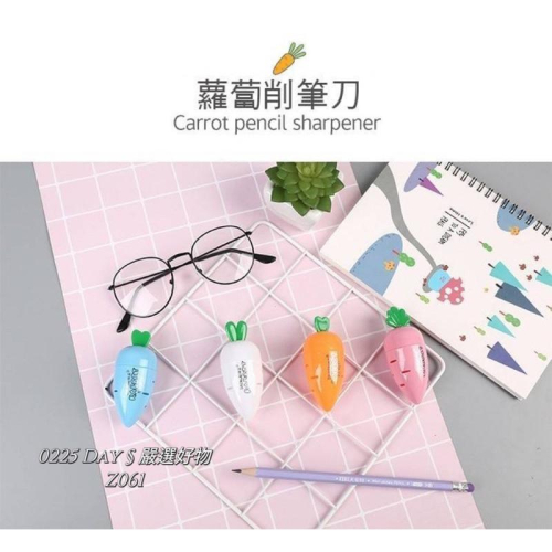 下單後約14天左右陸續到貨🚚陸續補貨 Z061#  可愛蘿蔔造型,小巧便攜 隱藏性刀口,安全第一 孔設計,削筆光滑 鋒利鋼製刀片 輕鬆省力 (注意)顏色隨機!不挑色!! (注意)如遇缺貨需等14-25天左右 ⚠️現貨商品請勿與預購一起下單!! 除非你能等預購全到一起寄出!!  ⚠️現貨1-5天出貨🚚 不要催單✨闆娘只有一個人🙏 ⚠️如缺貨需等7-14天左右唷 可先詢問有無現貨🫶🏻 新品從預購起唷!! 能等候者在下單 謝謝🙏 如訂購超過超商大小(含超過kg)會請您下兩單 本賣場沒有配合任何免運費!! 低消100$出貨🚚不包含運費 謝謝😊 如無滿百元會請您取消訂單!! ⚠️些微色差皆屬於正常現象 拍攝後的圖可能因光源.角度問題而有些許色差!! 此部分不屬於瑕疵範圍。 https://s-cf-tw.shopeesz.com/file/tw-11134208-7r98q-llh7ispgf0b599