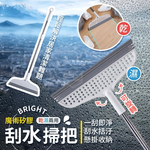 有了「魔術矽膠乾濕兩用可旋轉刮水掃把」