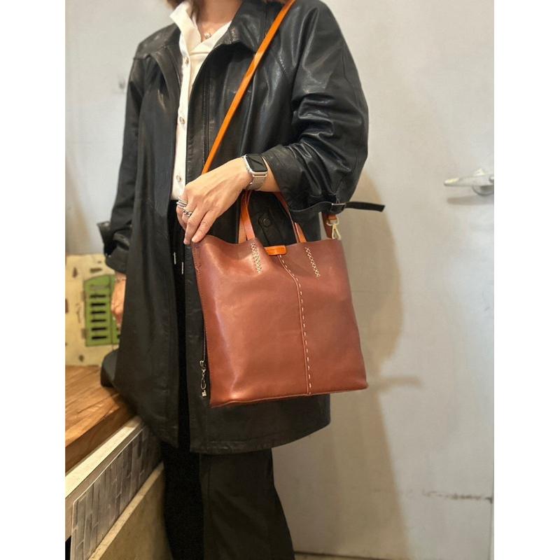 🔥 現貨【🇰🇷 Tanned】|韓國 簡約手提提把手工縫線托特包👜正韓 真皮系列 牛皮皮革 化妝包 隨身包