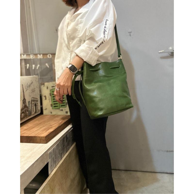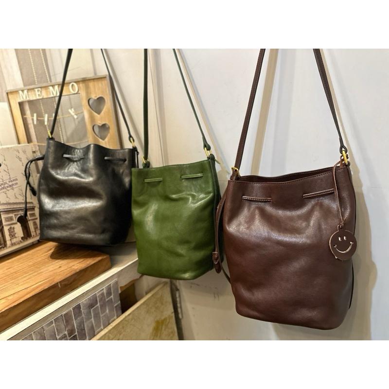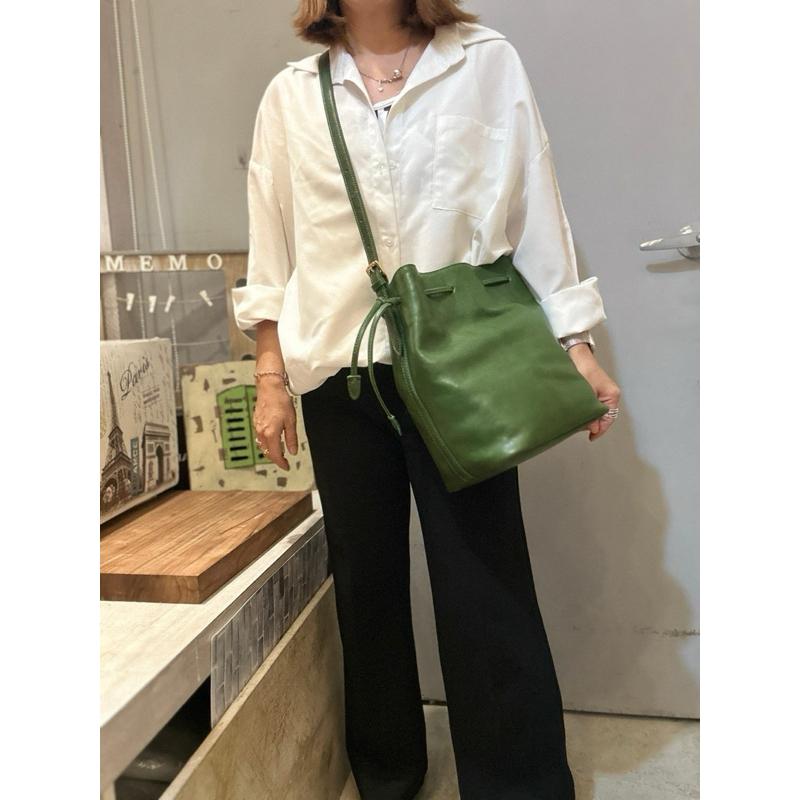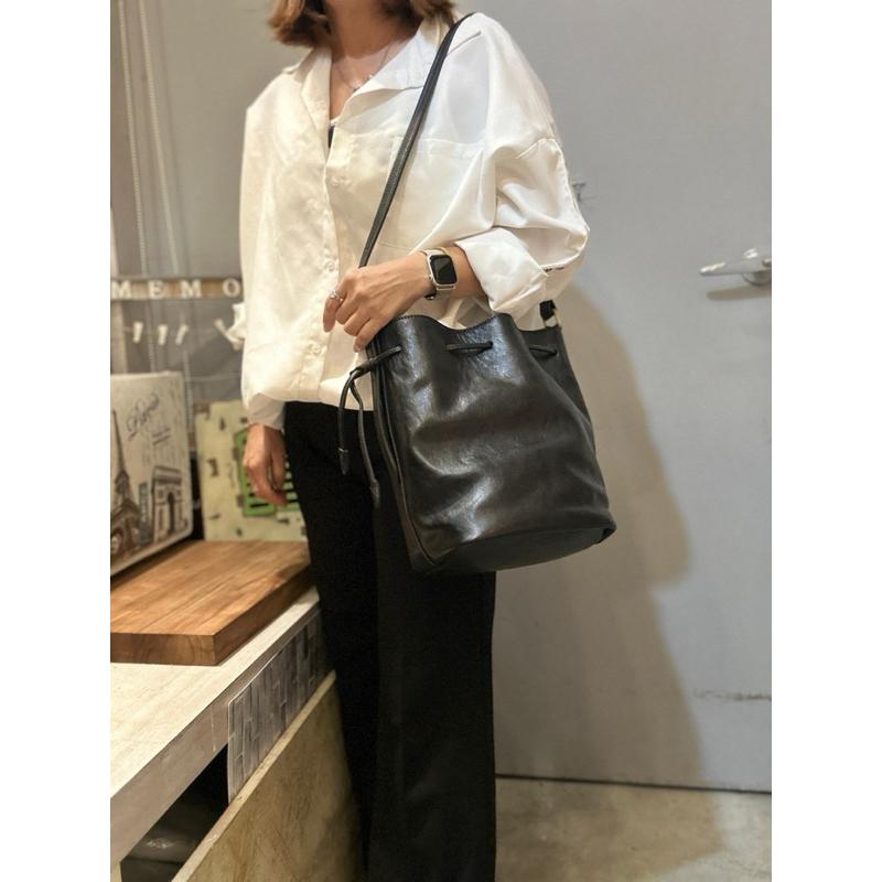 🔥 現貨【🇰🇷 Tanned】|韓國 牛皮側背旁束口水桶包👜正韓 真皮系列 牛皮皮革 學生包 iPad包 長夾 化妝包