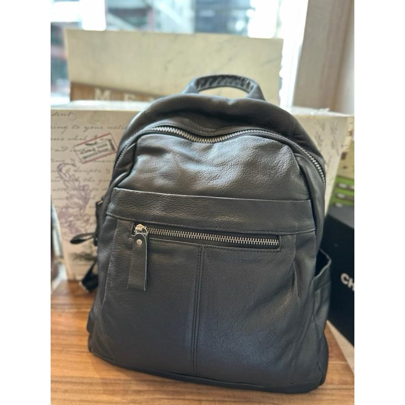 🔥 【🇰🇷 Tanned】|韓國 牛皮前拉鍊後背包👜正韓 真皮系列 牛皮皮革 電腦包 父親節禮物 男友禮物 真皮包